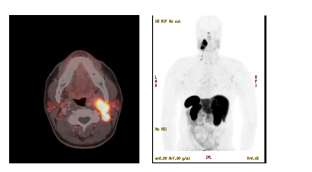 Image 2. Dotatate PET/CT scan of head and neck showing the head and neck paraganglioma.
